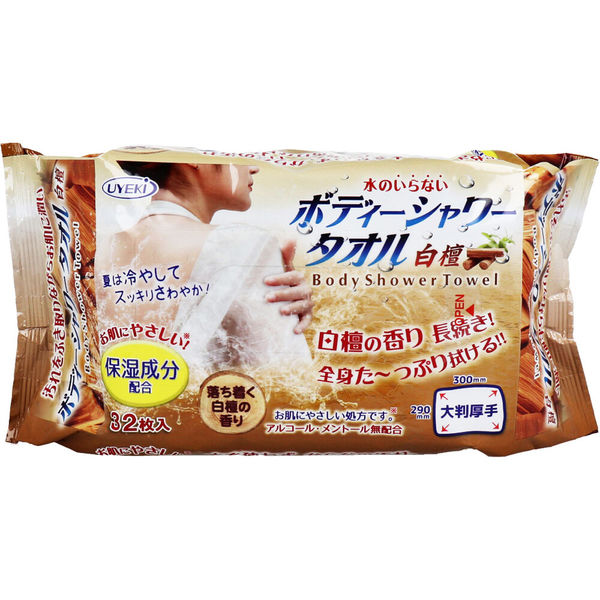 | 商品の特徴 | ●お肌にやさしい!保湿成分配合。 ●水を使わず、からだの汚れ、ニオイをスッキリ落とし、白檀の香りが長続き! ●落ち着く白檀の香りで、ニオイがスッキリ!しかも、ふんわり香り長続き! ●保湿成分に尿素を配合し、拭きあがりしっとりスベスベ! ●やわらかな厚手の大判シート香り長続き(290mm×300mm)だから、1枚で全身たっぷり掛ける! ※パッチテスト済(すべての方に皮膚刺激が起こらないというわけではありません。) | ||