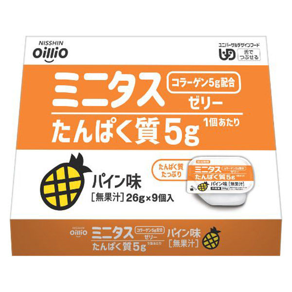 【栄養補助食品】 日清オイリオグループ 日清オイリオ ミニタスたんぱく質ゼリー パイン味 介護食 栄養補給 1箱(9個入)
