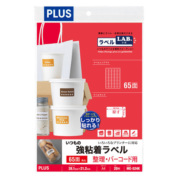本商品:【アウトレット】【Goエシカル】訳あり プラス ラベルシール いつもの強粘ラベル A4 65面 角丸 MEー524K 1袋(20シート入) |