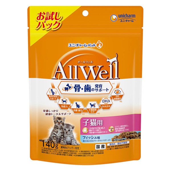 オールウェル 健康に育つ子猫用 フィッシュ味 国産 140g 1袋 ユニ・チャーム キャットフード