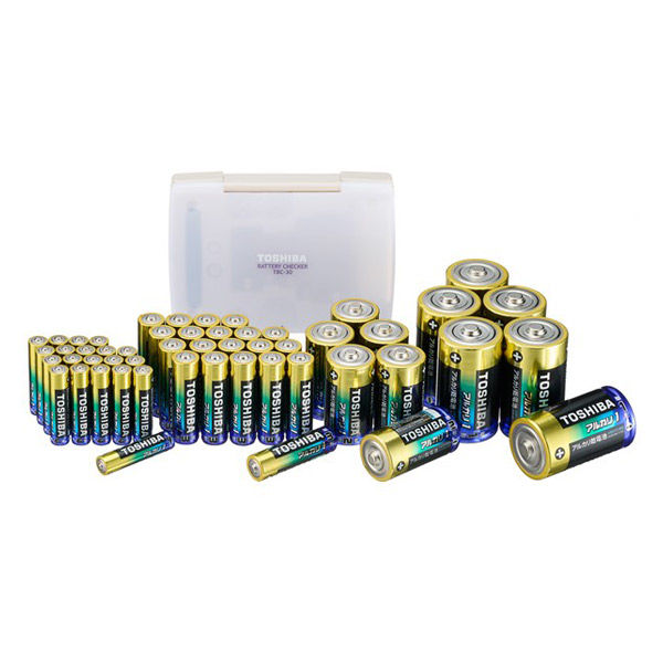 東芝アルカリ乾電池 単1 6本+単2 6本+単3 20本+単4 20本+バッテリーチェッカー 1個