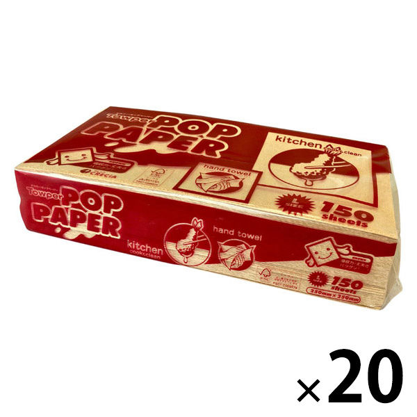 タウパー ポップペーパーL 茶 キッチンペーパー キッチンタオル 1セット(1個(150枚入)×20) 日本製紙クレシア