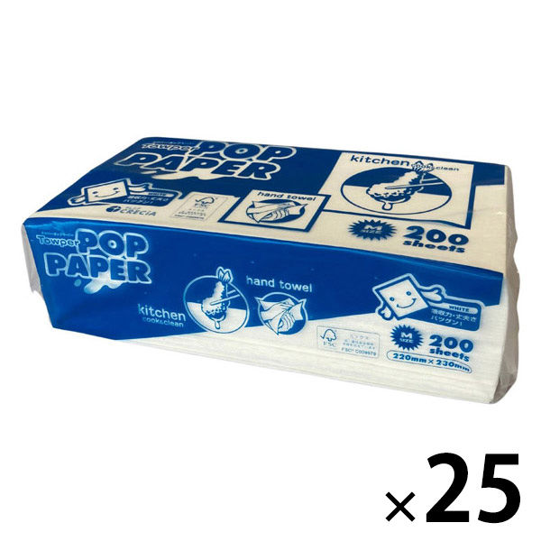 タウパー ポップペーパーM 白 キッチンペーパー キッチンタオル 1セット(1個(200枚入)×25) 日本製紙クレシア