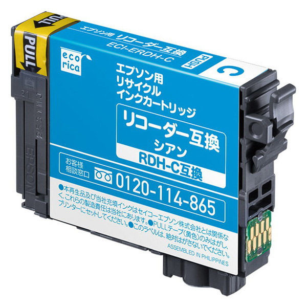 エコリカ エプソン(EPSON)用 リサイクルインク ECI-ERDH-C シアン 標準 RDH-C対応 1個