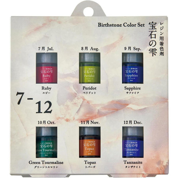 | 商品仕様5 | 7月~12月の誕生石カラーセット。リアルな鉱物カラーを再現。透明感のあるクリアカラーセット。 | ||