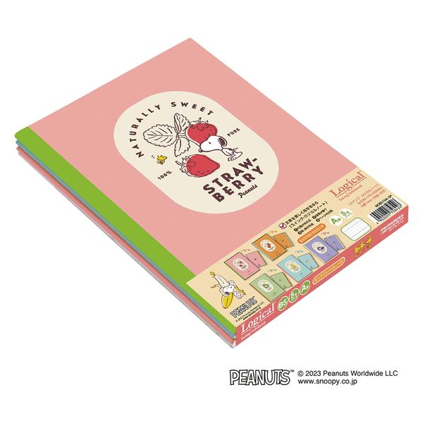 - ウッドストック、フルーツが描かれたパステルカラーの新デザイン!4つの特長で文章を美しく見せる「スイング・ロジカル・ノート」本文罫は、ノートのまとめやすさにこだわり分割メモリを入れるなど工夫を凝らした「ロジカル罫」を採用しています。ページ上下の3分割、4分割メモリを使用して、単語帳やリスト作成など様々な用途に活用できます。5種類のフルーツが柔らかいタッチで描かれてた優しいパステルのカラーデザインです。