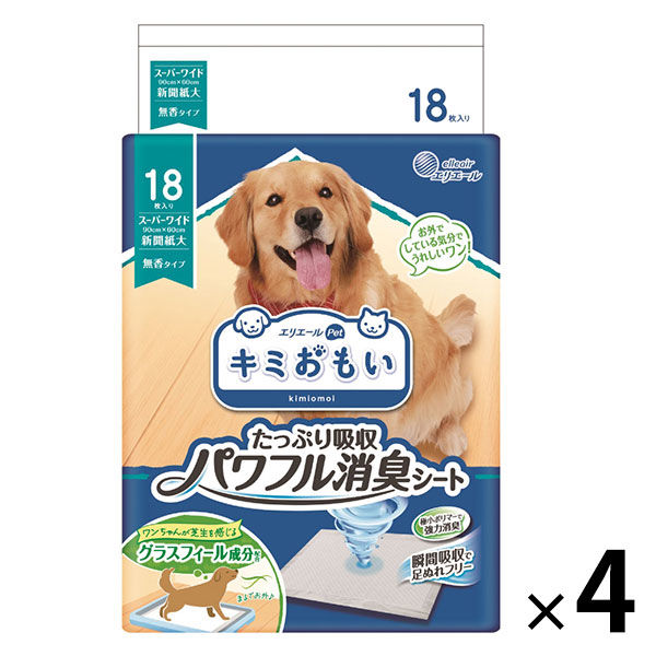 エリエール キミおもい パワフル消臭シート スーパーワイド 無香タイプ 18枚入 1セット(1袋×4)大王製紙