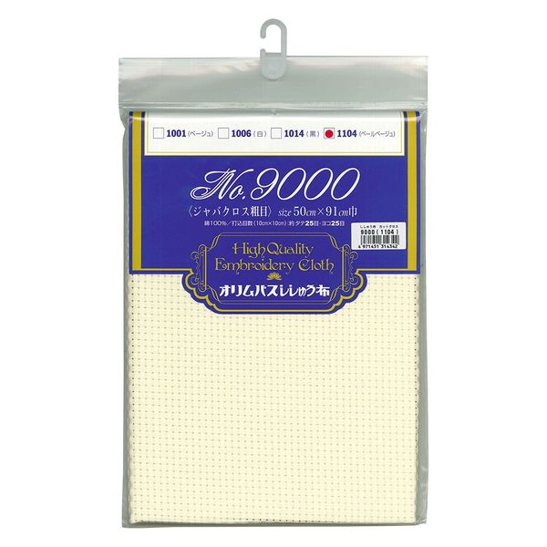 オリムパス製絲 刺繍布(約)91×50cmカット/No.9000ジャバクロス粗目・ペールベージュ OLY9000-1104 1枚