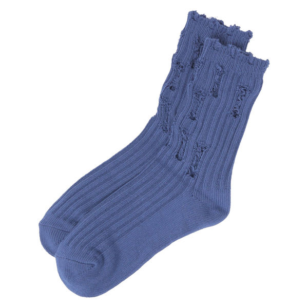 レディース ダメージクルーソックス 新色 ブルー 23~25cm LAKOLE/ラコレ