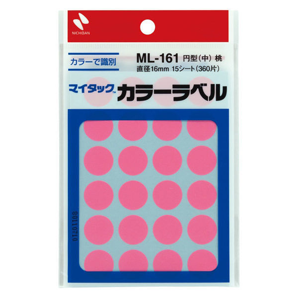 ニチバン マイタック カラーラベル 丸シール 桃 16mm ML-16111 1袋(360片入)(わけあり品)