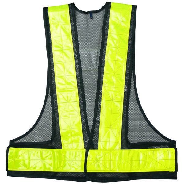 遠くからでも視認しやすい、7cm幅の反射テープの安全ベスト。メッシュ素材で軽量、通気性抜群です。