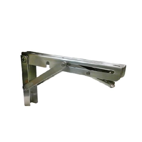 「美しさと耐久性を両立。ステンレス製レバー式折り畳み棚受」