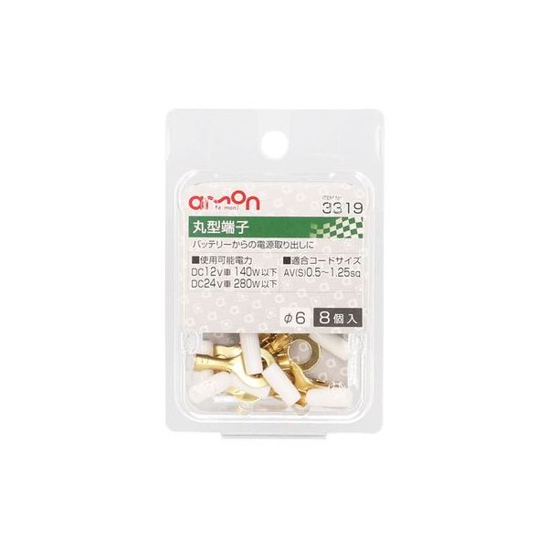 | 内容物 | ・丸型端子×8・スリーブ×8 | 使用可能電力 | DC12V車140W以下、DC24V車280W以下 |