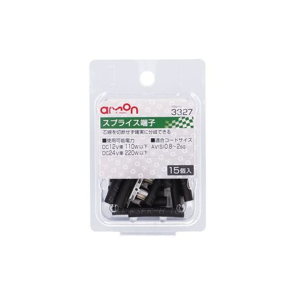 | 商品の特徴 | 【仕様】 ・使用可能電力: DC12V車 110W以下 DC24V車 220W以下 ・適合コードサイズ(かしめる2本の合計): AV(S)0.8~2sq 【内容物】 ・入数:15個 | ||
