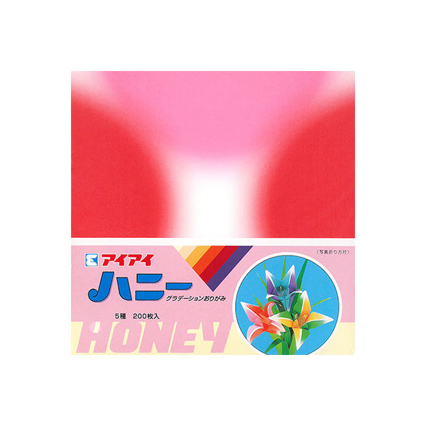 | 商品の特徴 | 色と色の調和が美しいハニーおりがみ。花などの作品づくりにおすすめです。たっぷり使える徳用タイプ。15×15cm、5色調各40枚入り。 | ||