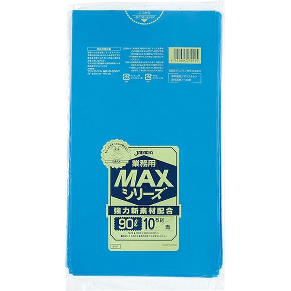 ジャパックス 業務用ポリ袋MAX 90L10枚 青 厚み0.025mm S-91 1冊(10枚)