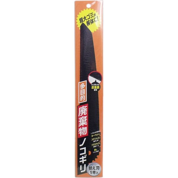 - ※本品は「多目的 廃棄物ノコギリ」専用の替刃です。替刃単体での使用や他の器具に取り付けての使用はできません。・刃物ですので、取り扱いや保管には十分ご注意ください。・刃の取り換え時や使用時は必ず安全手袋とゴーグルを着用し、ケガや事故には十分ご注意ください。切断物の破片や折れた刃が飛ぶ可能性があります。・切るものの材質や形状により、切断しにくいものや、切断できないものがあります。破損やケガの原因となりますので、無理に切断することはお避けください。・使用後は必ず汚れや水分を拭き取って通気性の良い場所で保管してください。汚れや水分が残っていると、さびや変色などの原因となります。また拭き取る際は、刃でケガをしないよう十分ご注意ください。・本品を水に浸けたまま放置したり、湿気の多い所や屋外に放置しないでください。・刃は消耗品です。永久的に使えるものではありません。ご了承ください。・刃先が欠けるなど破損した場合は使用しないでください。・使用しない時は、必ず刃を折りたたんで収納し、お子さまの手の届かない所に保管してください。・本来の用途以外には使用しないでください。
