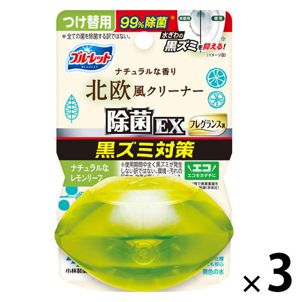 液体ブルーレット おくだけ除菌EX トイレタンク芳香洗浄剤 つけ替え用 北欧 レモンリーフの香り 67ml 1セット(1個×3)小林製薬