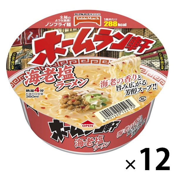 カップ麺 ホームラン軒 海老塩ラーメン(ノンフライ麺) 1セット(12個) テーブルマーク 288kcal