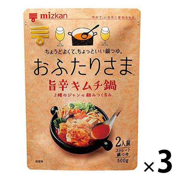 ミツカン おふたりさま 旨辛キムチ鍋 500g ストレートタイプ 3個