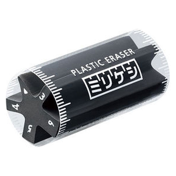 | 商品の特徴 | ●ミリケシのブラックタイプ。黒色の消しゴムなので、消しゴムの汚れが目立ちにくいです。●デザイナー馬場雄二氏との協業によって開発された商品です。●5つの消し幅を持つ消しゴムで、ノートの罫線の幅に合わせて上下の行の文字を消すことなく「1行」を狙って消すことができます。●消し幅:6mm幅・・A罫ノート用、5mm幅・・B罫ノート用、4mm幅・・C罫・5mm方眼ノート用、3mm幅・・手帳や小さい文字用、カド・・細かい部分用。●消し幅を表す数字は、消しゴムが減ってもなくなりません。 | ||