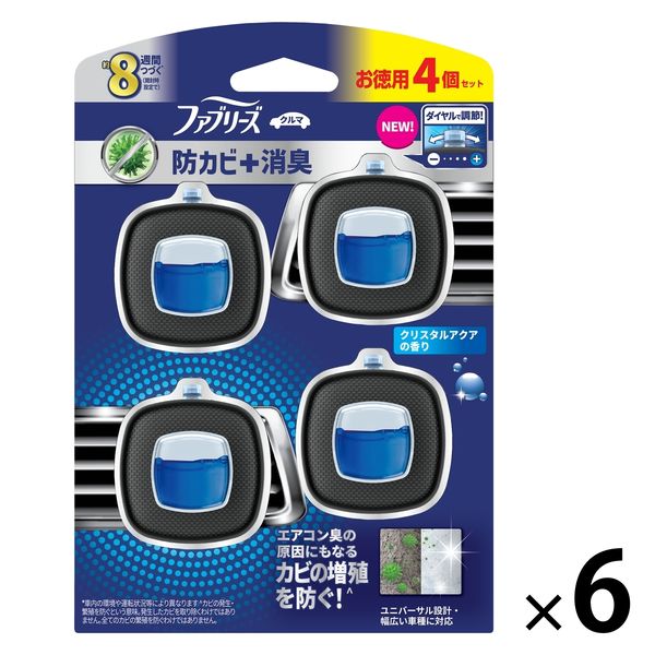 【旧品】ファブリーズ 車用 イージークリップ 防カビ+消臭 クリスタルアクア 1セット(1パック(4個入)×6) 消臭剤 芳香剤 P&G