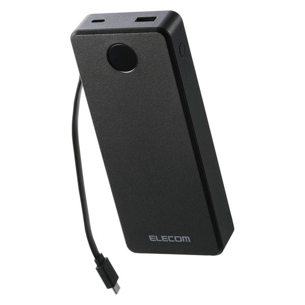 本商品:モバイルバッテリー 20000mAh 67W充電 ケーブル一体型 大容量 黒 DE-C77-20000BK 1個