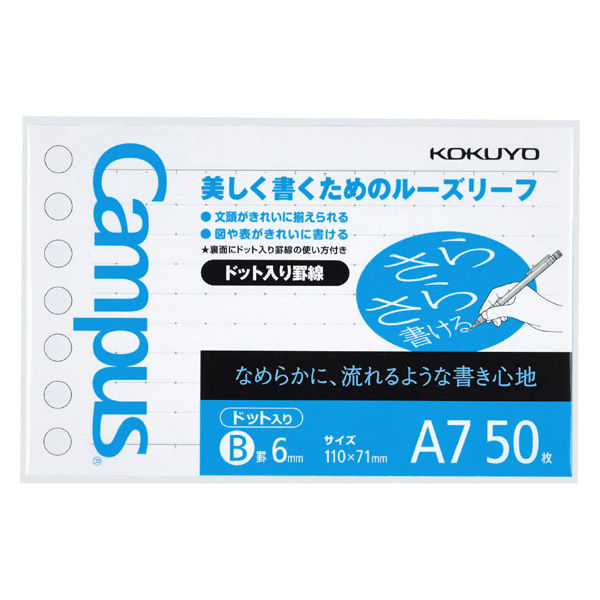 本商品:コクヨ ルーズリーフ B罫ドット入り A7 50枚 ノ-896BT 1袋(50枚入)