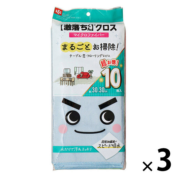 商品の特徴 【1パック 10枚入】洗剤を使わずに汚れを落とす高機能な激落ちくんのクロス。 超極細繊維(マイクロファイバー)が油汚れやホコリなどをスッキリ落とし水滴をすばやく拭き取る。高密度、高品質な超極細繊維を採用。激落ちくんシリーズのマイクロファイバークロスを是非お試し下さい。 カラ拭き、水拭きどちらでも使える。 水ぶきの場合は固く絞ってからお使い下さい。いっそう効果的に汚れが落とせる。吸水性が高いので洗車後の水滴の拭き取りにも効果的。フローリングワイパーにも取り付け可能。雑巾(ぞうきん)としてフローリングお掃除に◎