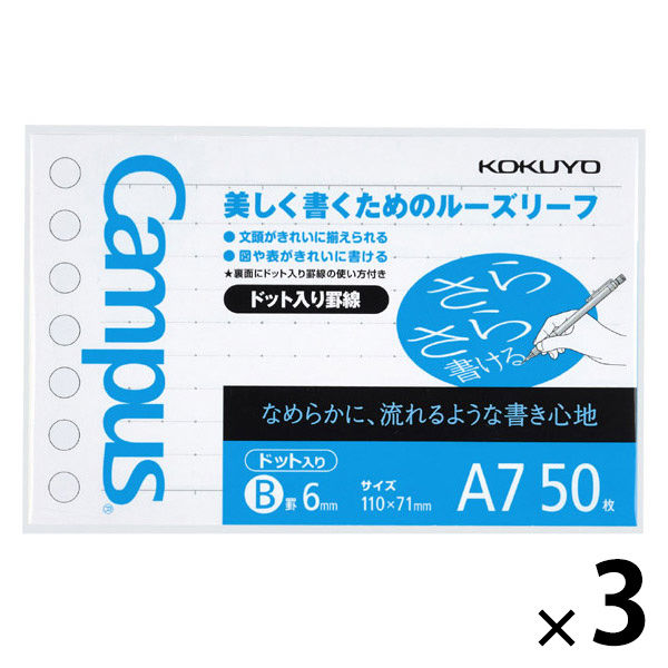 本商品:コクヨ ルーズリーフ B罫ドット入り A7 50枚 ノ-896BT 1セット(1袋(50枚入)×3)