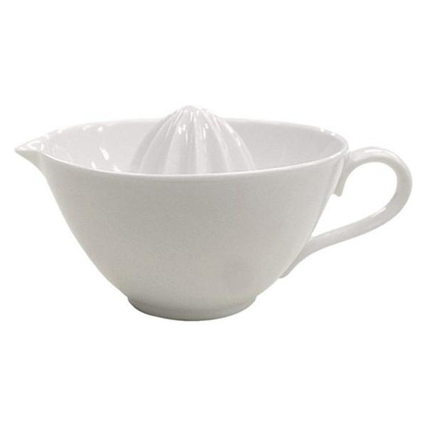 真っ白でシンプルな磁器製のティーカップ型レモンジューサー