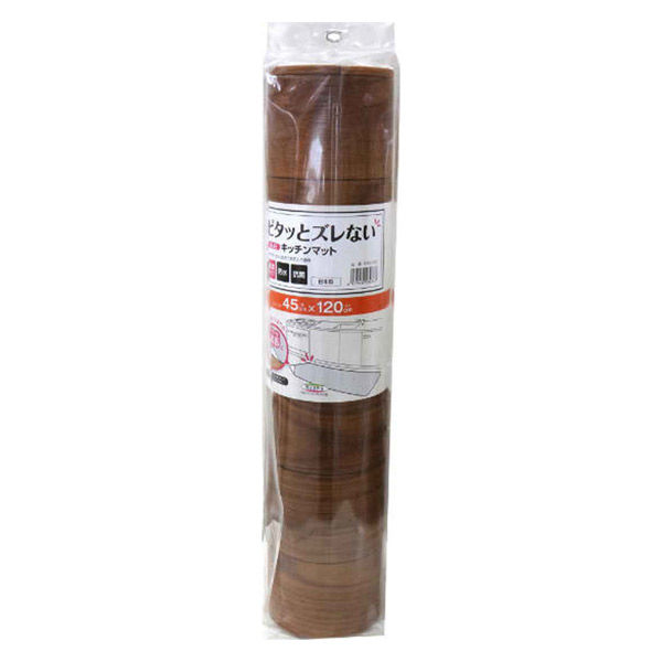 キッチンマット 120cm 吸着キッチンマット 木目 拭ける 吸着 滑らない 45cm×120cm ダークブラウン 359683 1個(直送品)