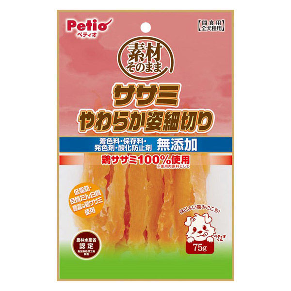 | 商品の特徴 | 低脂肪で良質たん白質豊富な鶏ササミを100%使用(使用肉原料として)。着色料・保存料・発色剤・酸化防止剤は使用せず仕上げました。小型犬・シニア犬にも食べやすいしっとりやわらか仕立て。ほどよい噛みごこちの姿細切り形状。#ペット 犬 いぬ わんちゃん ワンちゃん 犬おやつ スナック 犬スナック | ||