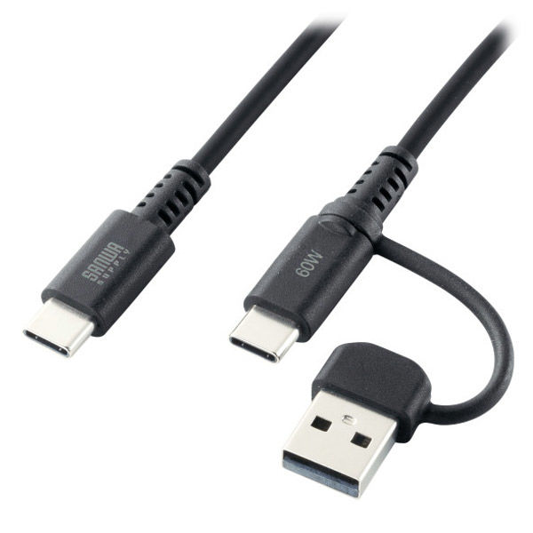 サンワサプライ USB2.0TypeーCケーブル(CtoA変換アダプタ付き・PD60W) KU-CCP60ACC10BK 1本