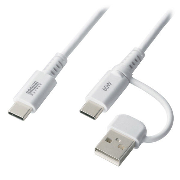 サンワサプライ USB2.0TypeーCケーブル(CtoA変換アダプタ付き・PD60W) KU-CCP60ACC10W 1本