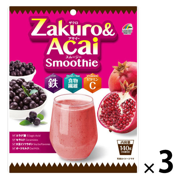 ザクロ&アサイー スムージー 1セット(1袋(140g)×3) 水や牛乳で溶かすだけ ユニマットリケン