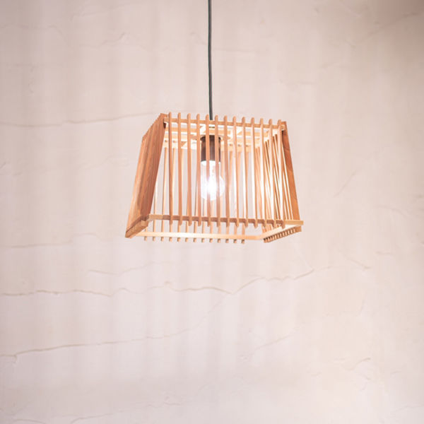 ●組子の合間から抜ける光と、天井に写る影がダイナミックなペンダント。光で照らされた木目の美しさも特徴です。