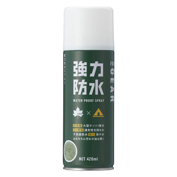 | 商品の特徴 | 通気性はそのままで水や汚れを弾く強力な防水スプレー。テントはもちろん、レインウェアやバッグなど防水をかけたいさまざまなアイテムにご使用できます。大型ドームテント約1張分の大容量。ノンシリコンの純フッ素系を使用しているので、表面に膜をつくらず、通気性はそのままで快適に防水してくれる。水だけでなく、汚れや油を弾く効果もあります。【アウトドア】【キャンプ】【屋外作業】 | ||
