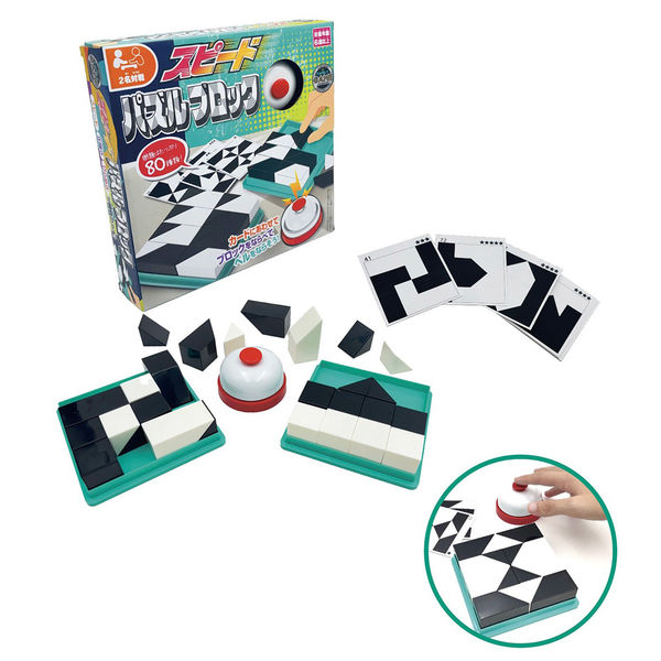| 商品の特徴 | スピードや正確さはもちろん、ブロックは立体のため重なりにも注意が必要でひらめきが重要となります。全80種類の模様があり、繰り返し遊べるアイテムです。頭を使う遊びとして、知育玩具にもおすすめです。 | ||