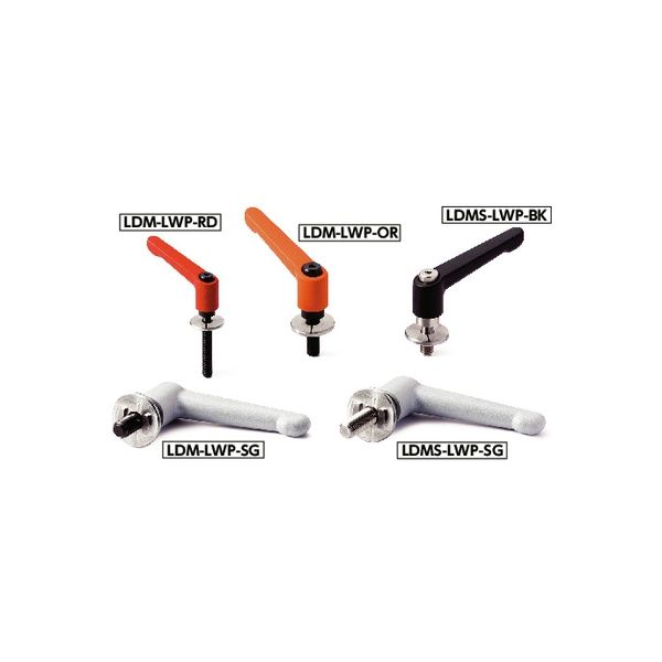 | 商品の特徴 | 長穴用座金が組み込まれたクランプレバー。座金はヌスミ加工部に組み込まれており、脱落を防止します。また、座金の組み込み作業も不要です。座金の外径はねじ径の約3倍。締めつけ部位に対して十分な座面を確保します。ねじ部の材質は2種類。[[LDM-LWP]]----スティール製[[LDMS-LWP]]----ステンレス製 | ||