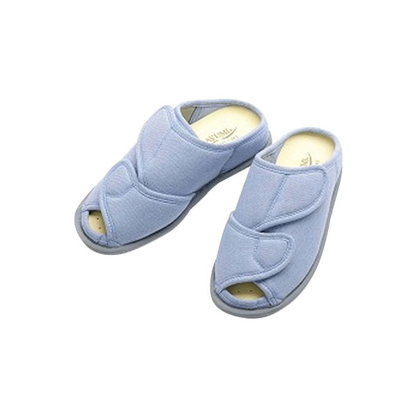 | 商品の特徴 | 足の状態に合わせて、つま先・甲部2ヶ所で調整可能なルームシューズ。甲が全開して履きやすい。自分専用のインソールや治療用の足底板(厚さ5ミリ程度まで)に入れ替え可能。適度なグリップ性と水がしみ込みにくい設計。 ウェルファンカタログ 福祉用具便利帖 ウェルファンコード:201409 | ||