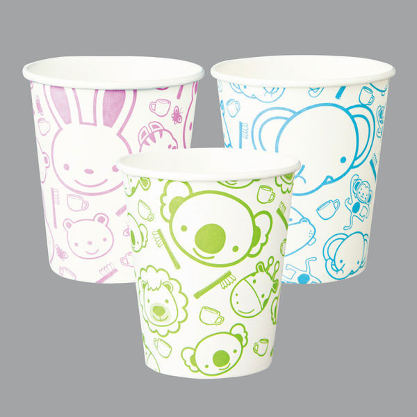 | 商品の特徴 | ・坪量:190g/m2 ・5オンス(150mL):開口部直径65mm、底面直径47mm、高さ74mm ・内面防水処理 ・中国製 キャッチコピー: 1カートン3柄入り。かわいい動物柄です。(ゾウ・カバ・サル/クマ・ウサギ・リス/ライオン・コアラ・キリン) | ||