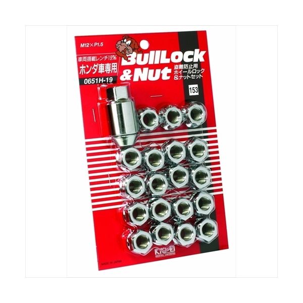 | 商品の特徴 | ●盗難防止用ホールロック&ナットセット●ロックナットで国内、海外から定評のメジャーブランド。盗難防止ホイールロックの完成形「ブルロック」シリーズ。●19HEX 20個入(ナット16個 / ロック4個) 貫通タイプ●付属品:キーアダプター(A-119)1個 | ||
