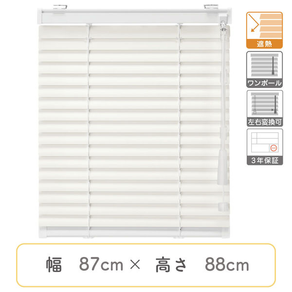 | 商品の特徴 | ブラインドは長く使うからこそしっかりとこだわったプロ仕様品質をそのままに、機能をシンプルにすることでお手頃でお安い格安価格を実現しました。遮熱加工済みで羽根幅は標準の25mm。取付けはワンタッチブラケットでとても簡単です。カーテンレールにも取付可能な金具が付属。操作棒は左右変換可能。 | ||
