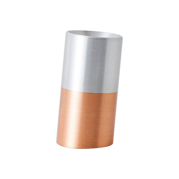| 商品の特徴 | 異なる比重のアルミニウムと銅を回転摩擦圧接溶接で接合したユニークなペンスタンド。 | ||