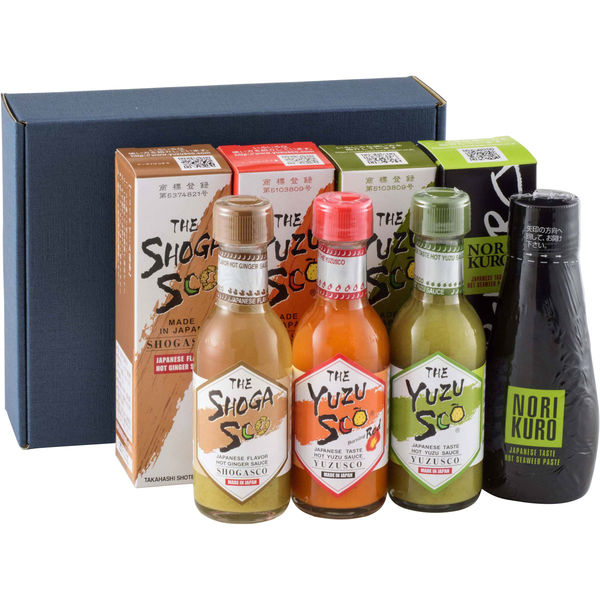 | 商品の特徴 | 九州名産柚子こしょうをもっと手軽にそして幅広い料理に厳選したお酢とブレンドし液体にした「ゆずすこ」、辛さが際立つ「ゆずすこレッド」、生姜とお酢をブレンドした「生姜ゆずすこ」、ゆずすこと有明海産海苔佃煮をブレンドした「のりクロ」の4本セットにしました。 | ||