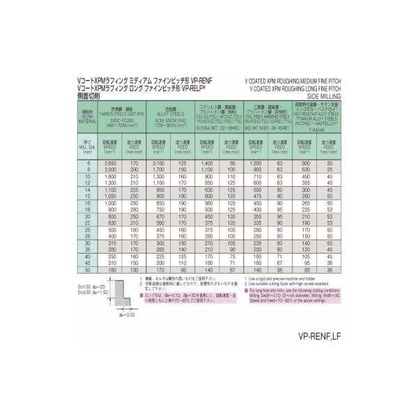 外径Dc 12mm 商品仕様1 ●【商品説明】●Vコーティングを施した粉末ハイスXPMラフィングミディアム刃シリーズです。●難削材にも効果を発揮します。●コバルトを含有する材料を使用しています。●耐溶着性、耐摩耗性に優れています。●G-LIST No.:EH1205●材質:高級粉末ハイス●表面処理:Vコーティング(複合多層コーティング)●ねじれ角(°):30●外径DC(mm):12●全長LF(mm):110●刃長APMX(mm):40●シャンク径DCON(mm):12●コーナ面取幅CHW(mm):0.6●刃数ZEFP(枚):4●重量(g):95●仕様:ミディアム/ファインピッチ●コバルトの含有:○