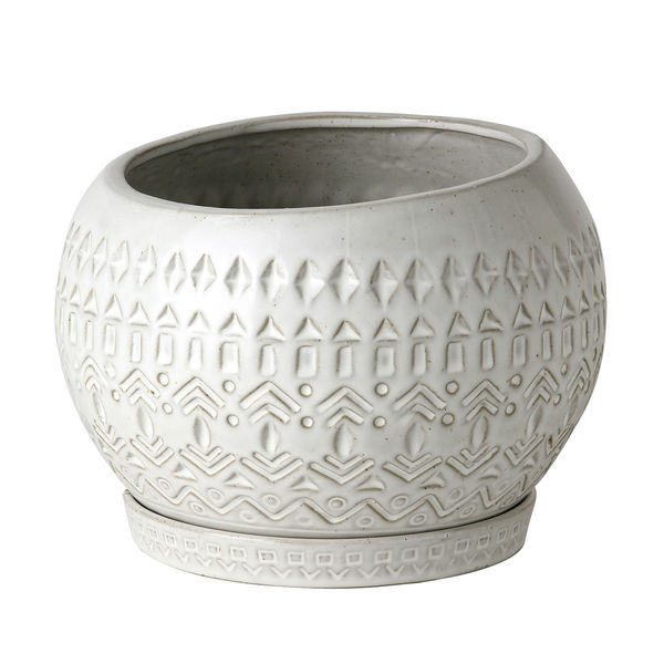 | 商品の特徴 | 表面は真っ白ではなくグレー混じりのあじわいがあり良いアクセントになっています。石のように硬く汚れが付きにくいストーンウェアは陶器と磁器のよい点を合わせもつ素材です。穴あり、受け皿付きなので直接植え込んで使え扱いやすいプランターです。 | ||