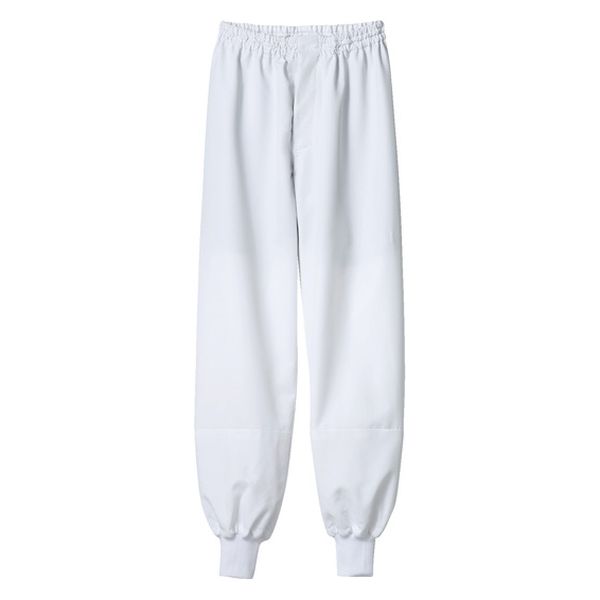 サラッとさわやかで、薄手なのに耐久性もしっかりとしたウエスト総ゴムタイプの白の工場用パンツ。