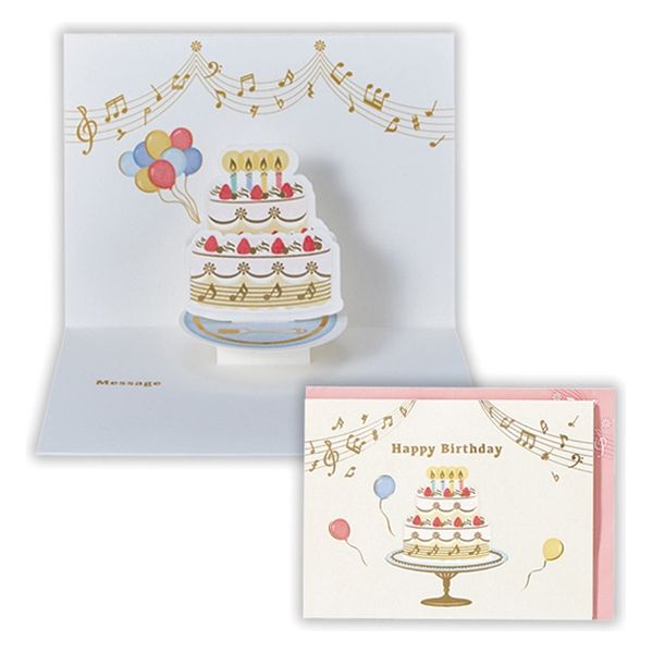 日本ホールマーク お誕生祝い グリーティングカード 立体 シャイニー・ミュージック ケーキ2 1枚
